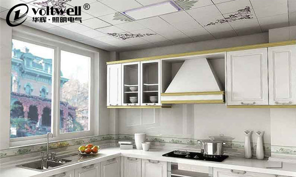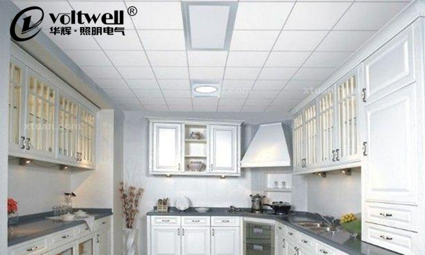 按實際情況選擇。在款式上,目前市面上不適合廚房用的燈具不多,所以,可以大膽選擇??傮w風(fēng)格上以簡潔實用為主,推薦給大家一款華輝照明集成吊頂LED面板燈,專用于廚房照明設(shè)計。