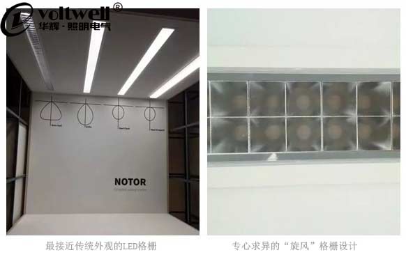 辦公室照明細(xì)分市場的產(chǎn)品類型,有著很明顯的兩極分化趨勢。針對中端和低端需求的產(chǎn)品,以面板燈和格柵燈為主,效果追求滿足標(biāo)準(zhǔn)的均勻照明。產(chǎn)品差異性不明顯,但是局部細(xì)節(jié)卻能顯示出“求異”的設(shè)計(jì)精神。同樣是LED格柵燈,在細(xì)節(jié)設(shè)計(jì)方面各大品牌卻各顯特色。