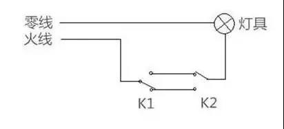 雙控開關(guān)有很多種接線方式,如果電工采用了下面這種接線方法,就會(huì)關(guān)燈后發(fā)微光。