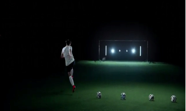 在影片中,Abby Wambach走進(jìn)了黑暗的足球場,這個足球場只用了不夠亮的白熾燈泡來當(dāng)足球場的照明,她便踢了幾個球,擊中球門中的幾盞白熾燈泡光源,把它們打滅,然后拿出遙控器,把整座球場的LED照明系統(tǒng)點(diǎn)亮,呈現(xiàn)的效果非常好。