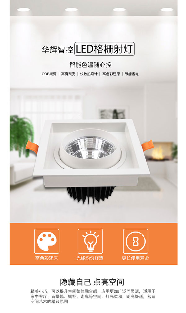 當(dāng)前位置:首頁 » 華輝照明資訊中心 » 公司動(dòng)態(tài) » 華輝照明智能LED格柵射燈詳情頁介紹