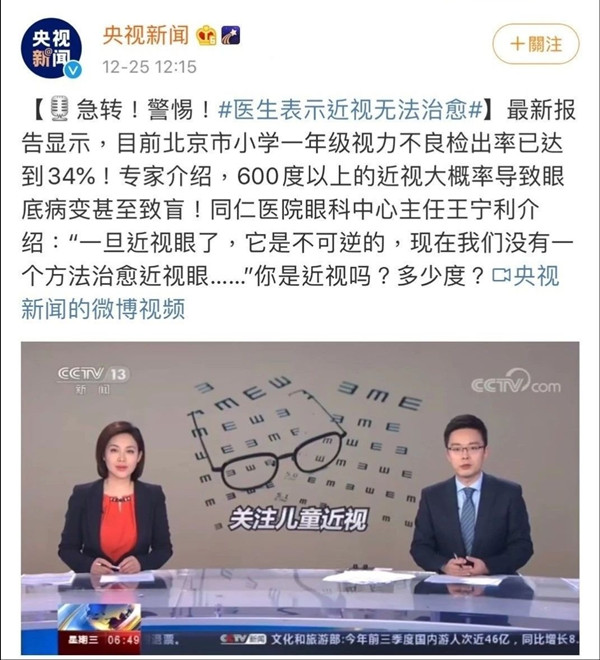 近年來,由于課內(nèi)外負(fù)擔(dān)加重,手機、電腦等電子產(chǎn)品的普及,用眼過度、用眼不衛(wèi)生、缺乏體育鍛煉和戶外活動等因素,我國兒童青少年近視率居高不下、不斷攀升,近視低齡化、重度化日益嚴(yán)重。
