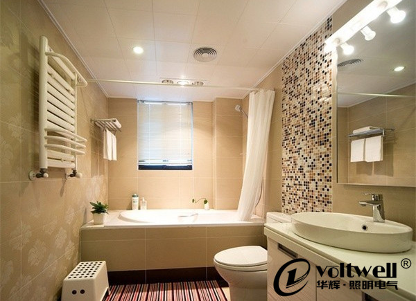 衛(wèi)生間的光源也有功能性要求——負(fù)責(zé)照亮梳妝鏡,所以梳妝鏡的燈光選擇至關(guān)重要。既不能太強(qiáng),也不能太暗??梢赃x擇暖光源讓你夜間進(jìn)入廁所時(shí)不至于因?yàn)樘炼袛嗨?,但衛(wèi)生間的頂燈也不可缺少:一則頂燈能避免陰影,方便你清掃死角或者尋找雜物;二則明亮的中性色調(diào)頂燈,增強(qiáng)白色洗手間的潔凈感。