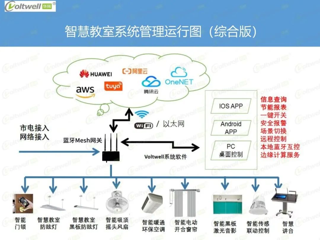 以智能化照明為基礎(chǔ),通過物聯(lián)網(wǎng)無線通訊、智能感知、分布式智能控制技術(shù)為基礎(chǔ),構(gòu)建一套智能環(huán)境整體解決方案,在滿足照明需求的前提下,以智能化方式管理教室范圍內(nèi)的多個子系統(tǒng),實現(xiàn)照明管理、智能應(yīng)用、統(tǒng)一維護(hù)、業(yè)務(wù)閉環(huán)的整體業(yè)務(wù)能力。平臺可以定時開關(guān)教室燈、根據(jù)季節(jié)調(diào)整燈光場景,查看每間教室使用情況,故障實時監(jiān)控等。