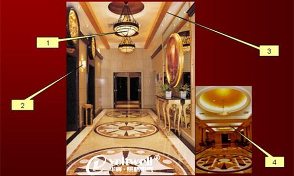 1、裝飾性吊燈為過道提供環(huán)境照明,同時此吊燈的裝飾性也必需融入酒店裝飾風格。