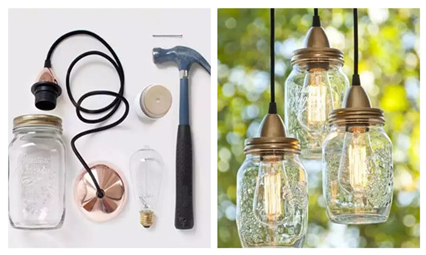 用果醬瓶做成的設(shè)計(jì)感吊燈