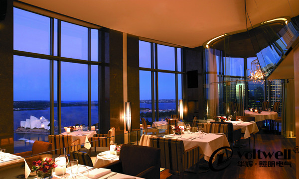 餐廳區(qū)/中餐廳的照度相比西餐廳要高出許多,但亮度對比不宜過強,光線要均勻。點式光源、條帶狀光源或各種類型的吊燈,均可以滿足良好的照明要求。餐桌桌面的照明采用顯色性高的燈具,真實還原菜肴的質(zhì)量和色調(diào),引起顧客食欲。星級酒店中餐的檔次相對較高,照明應(yīng)富有立體感。在餐廳照明應(yīng)用中,用壁燈或投光燈來矯正一般照明的平面化,營造高品味的用餐環(huán)境。