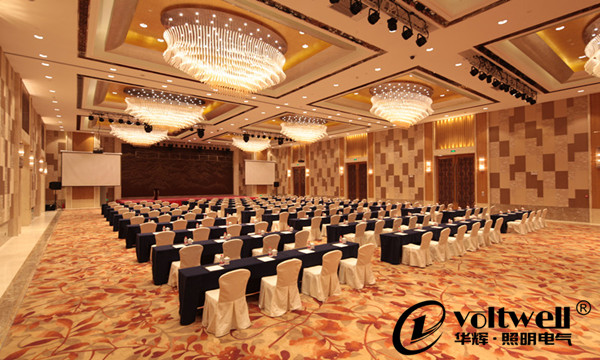 多功能廳綜合了宴會、會議等功能,應(yīng)注意整體照明、局部照明和重點照明的搭配。整體照明需要把握酒店室內(nèi)的照明環(huán)境,包括亮度、光源種類、光色等;重點照明,多采用可靈活調(diào)節(jié)照射角度的燈具,實現(xiàn)不同場景的燈光變換效果。多功能廳中應(yīng)配備智能調(diào)光系統(tǒng),實現(xiàn)不同使用場景的切換。星級酒店多功能廳的燈光設(shè)計與裝修風(fēng)格和檔次息息相關(guān),在燈具選擇上多以可調(diào)角度、大功率的燈具與光源為主。