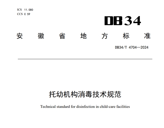 近日,安徽省市場監(jiān)管局發(fā)布了安徽省地方標準DB34/T 4704-2024《托幼機構(gòu)消毒技術(shù)規(guī)范》。