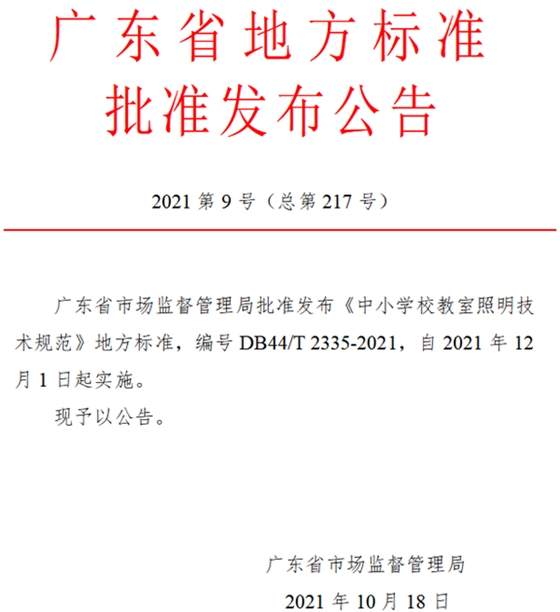 《中小學(xué)校教室照明技術(shù)規(guī)范》該標(biāo)準(zhǔn)于2021年12月1日起正式實(shí)施。發(fā)布會還透露:2023年廣東省將全面完成中小學(xué)校教室照明達(dá)標(biāo)任務(wù)