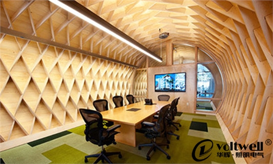 圖:會議室照明的常規(guī)做法,使用線型燈做基礎(chǔ)照明。