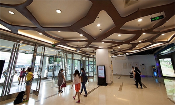 商場的入口是第一印象空間,吸引顧客進入商場的點睛之地,設計師和經營商為了滿足顧客的需求都會將其作為商場的重點空間。一般商場的天花都在3米左右,多采用led筒燈led格柵燈盤搭配進行整體照明,同時還采用天花的造型來突出商場不同區(qū)域的氛圍。