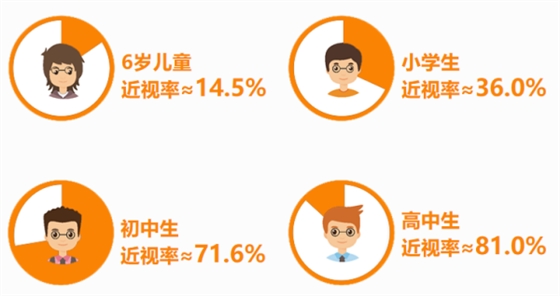 目前,我國(guó)青少年的近視發(fā)病率呈不斷上升趨勢(shì)。據(jù)世界衛(wèi)生組織最新研究報(bào)告顯示:目前中國(guó)高中生和大學(xué)生的近視率均已超過(guò)七成,并逐年增加,青少年近視率高居世界第一,小學(xué)生的近視率也超過(guò) 45%。