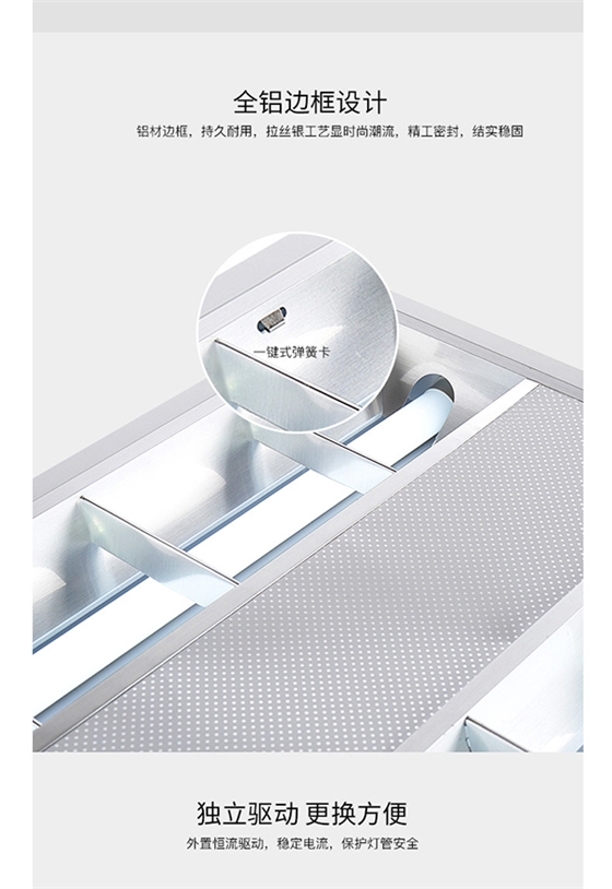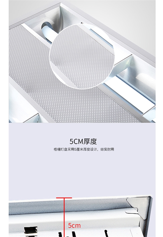 1、取下燈盤上之格柵反光罩,注意取格柵反光罩時(shí)輕拿輕放,不要刮傷,將燈具本體放置已預(yù)留好的天花龍骨上。放置時(shí)請(qǐng)注意四邊的位置,讓其燈具四邊完全擱置龍骨條上,以免燈具掉落,注意當(dāng)燈具較重時(shí),請(qǐng)用線絲將燈具吊裝在天花板上。