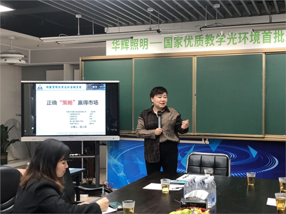 學(xué)習(xí)交流會下午2點半準(zhǔn)時開始,首先由華輝教育照明總經(jīng)理戴姣華女士致歡迎辭,對全國牛商總匯副會長陳小莉女士、牛商匯各位領(lǐng)導(dǎo)嘉賓、順德各企業(yè)家及小伙伴們遠(yuǎn)道而來表示最熱烈的歡迎,現(xiàn)場能感受到大家對這次學(xué)習(xí)交流會充滿了期待。