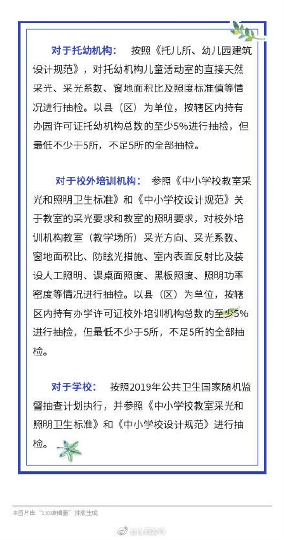 7月6日,從山西省衛(wèi)健委傳來消息,全國采光照明雙隨機(jī)抽查工作會(huì)日前在太原市召開,山西將對(duì)學(xué)校、托幼機(jī)構(gòu)、校外培訓(xùn)機(jī)構(gòu)教室(教學(xué)場所)的采光和照明以“雙隨機(jī)”方式進(jìn)行抽檢、記錄并公布。