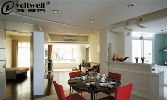 餐廳一般距離廚房較近,且有飯菜的熱氣,油煙相對較大,為保持潔凈,餐廳燈需要經(jīng)常清洗,因此宜選擇燈罩光潔的led吸頂燈。我想大部分朋友應(yīng)該都有更換燈泡的經(jīng)歷;踩著桌子,踏著椅子,抬高雙臂至屋頂。整個過程下來,胳膊脖子那叫一個酸呀,累啊。所以拆洗燈罩的方便性還是要考慮的。另外餐廳燈的光線還要使飯菜看起來色香味俱全,這樣才能增進食欲,因此選擇15-20W的led吸頂燈是比較合適的。