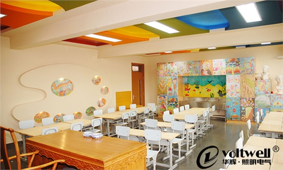 3.如果教室空間較高,頂棚反射比高,學(xué)校照明可以采用懸掛間接或半間接照明燈具,該類燈具除向下照射外,還有更多的光投射到頂棚,形成間接照明,營造更加舒適宜人的光環(huán)境。如果教室有吊頂,一般采用嵌入式或吸頂式燈具。