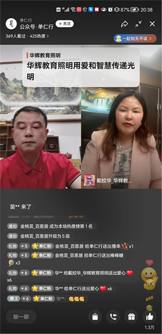 (華輝教育照明總經(jīng)理戴姣華女士親自直播。)