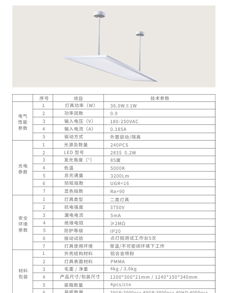 產(chǎn)品規(guī)格 :36W 1200x300 側(cè)發(fā)光