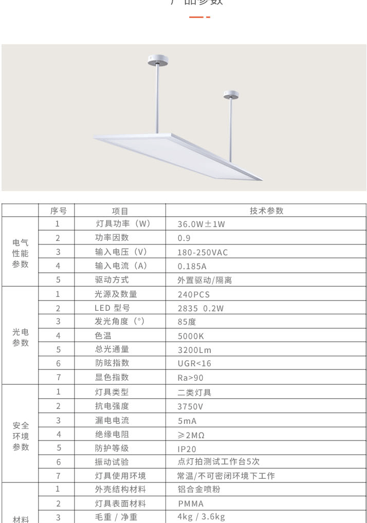 產(chǎn)品名稱 :36W LED 底發(fā)光教室燈