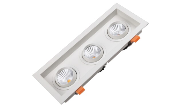 1、G13系列三頭COB格柵射燈燈體采用優(yōu)質(zhì)鋁合金噴涂處理,散熱好,面框?yàn)殇X合金沉臺(tái)設(shè)計(jì),外觀新穎、時(shí)尚