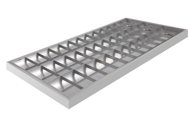 1、T8 普及型格柵燈盤燈體表面采用磷化噴塑工藝處理,防腐性能好,不易磨損,褪色,反射罩采用光學(xué)原理深弧型設(shè)計(jì),反射率高。有啞光鋁、鏡面鋁、不銹鐵、不銹鋼、腹膜鐵等材料可供選擇. |